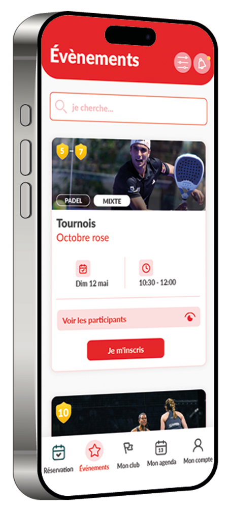 Réservations en ligne – Inscriptions aux événements du club – Offres et Promotions – Actualités du club – Création de matchs et recherche de partenaires… Tout ça avec l’application Gestion sports, créateur de logiciels pour clubs de padel !